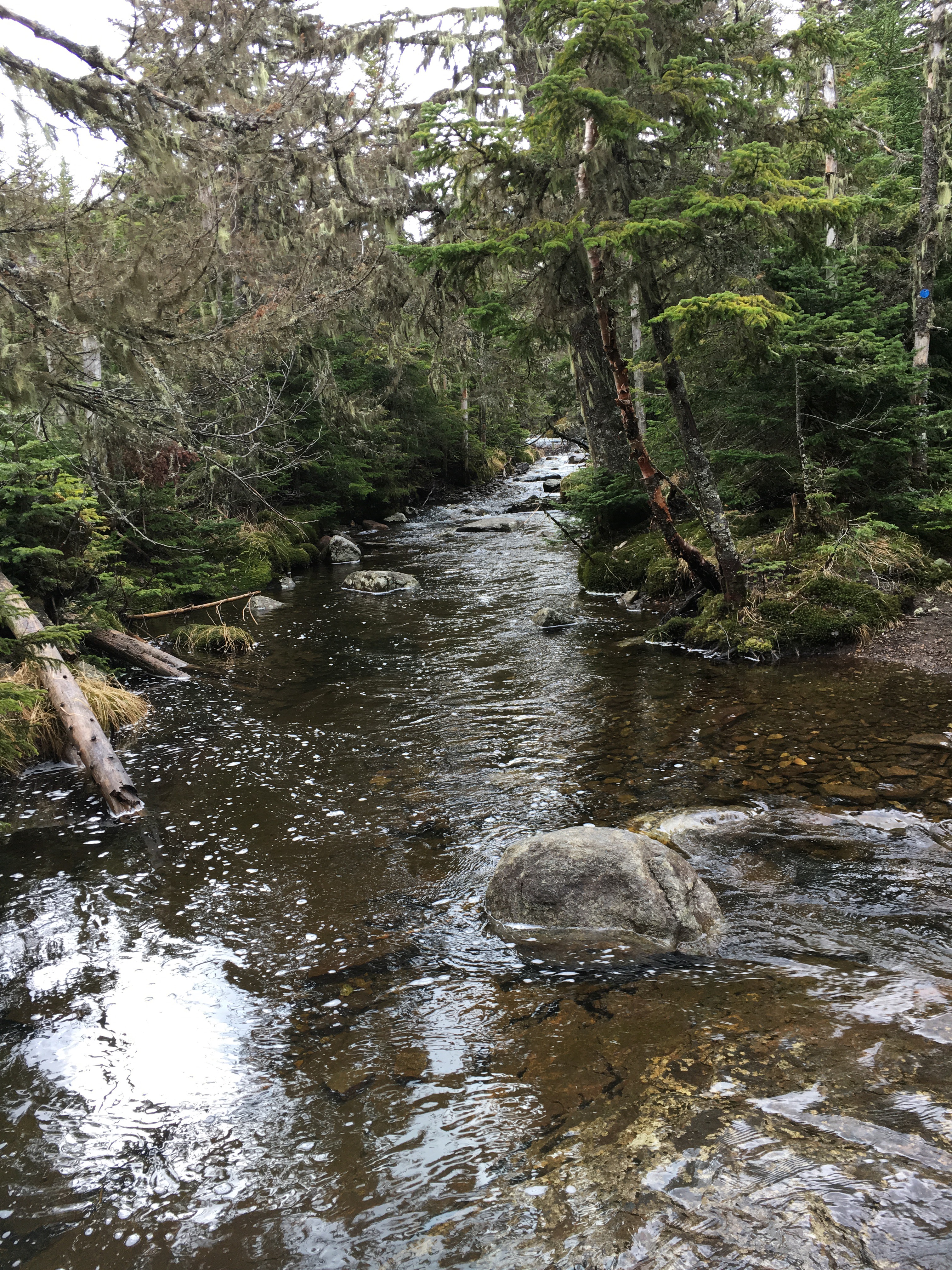 Phelps Brook to be exact. There was an option to take the High Water Bridge over that I past a bit earlier and neglected to trust that the trails would meet up eventually. I stayed the course and followed the blue trail markers. Which in turn, led me to crossing the brook via rock hopping.