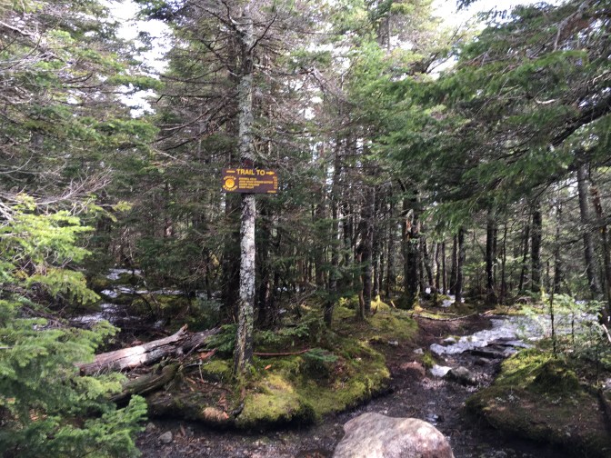 I left the Loj at 6:30 a.m. on Saturday morning, May 14th. It was 41 degrees with a slight breeze and just a few clouds in the sky. The forecast was predicting rain showers with thunderstorms by early afternoon so my pack was literally packed with every type of jacket imaginable. Plus, I have a history of falling on EVERY hike, so along with food and water, I had some extra clothes as well.