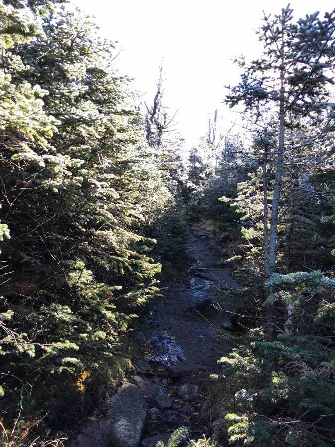 This one! Here’s a good point to note about this particular trail…it’s not marked. At all. There was one more sign on a tree further down label “Colvin” with an arrow. So yes, it is true, that like Columbus, I lost the trail a few times. It appeared to be much less traveled. The one thing that DID help me was following the scrapings on the rocks, which were most likely left by previous “microspike-footed” hikers. #makeupyourownwordswhenneccesary