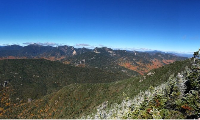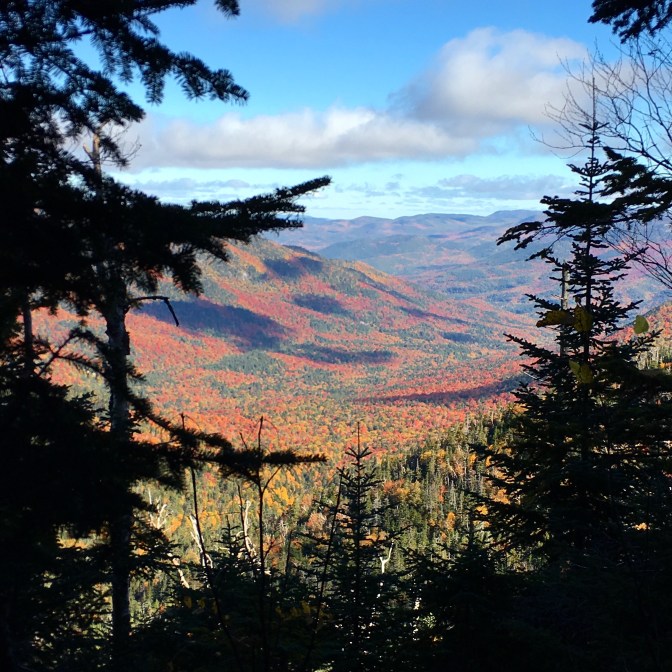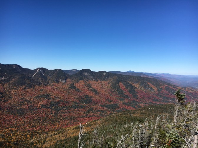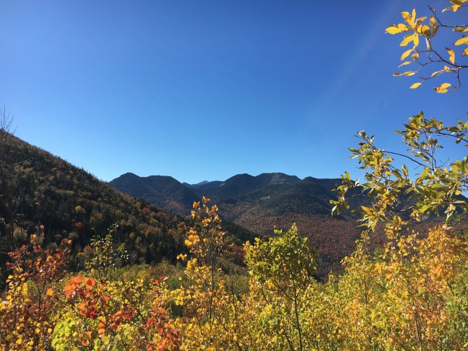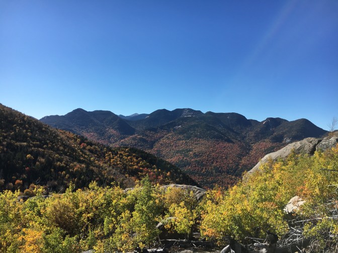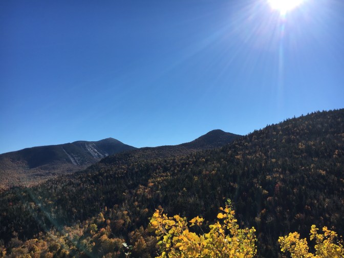 I don’t even remember passing through Bear Den, honestly. Was there a trail distance sign somewhere? No clue. Because the next thing I knew, I reached Noonmark’s shoulder at 2:45 p.m., which was spectacular. The views just continued to get better and better. More and more like autumn on the descent.
