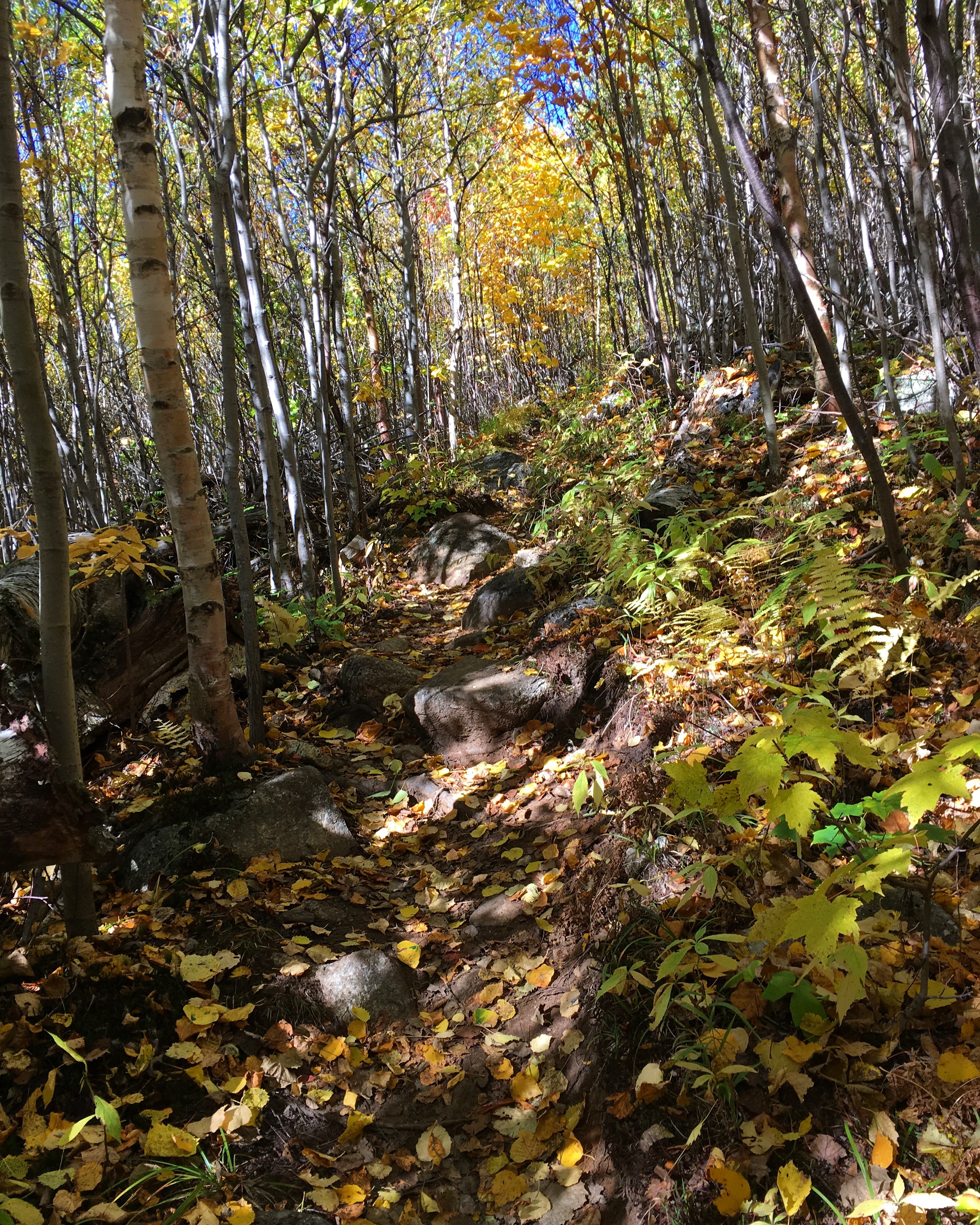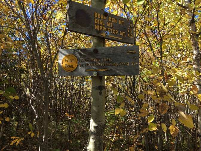 I did not linger long on Dial, as Time hung over my head as a gentler reminder. So back to the H.G. Leach trail towards Bear Den. This section of the ridgeline was so pretty. Golden birch leaves decorated their lovely white-barked bodies. Despite the exhaustion that was setting in, there was always a reason to smile from here on out.