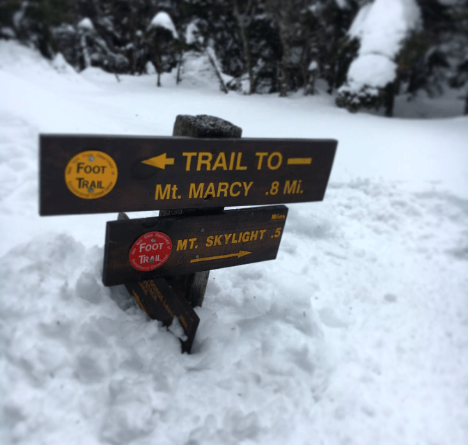 Winter hiking is certainly full of magic! On Sunday, February 19th, my dear friend Mallory and I put our stubborn hearts to the test when we set out to climb Mount Skylight and Gray Peak. Our plan was the 19-mile out and back route via Lake Arnold, since we’ve both been graced by Miss Marcy already.
