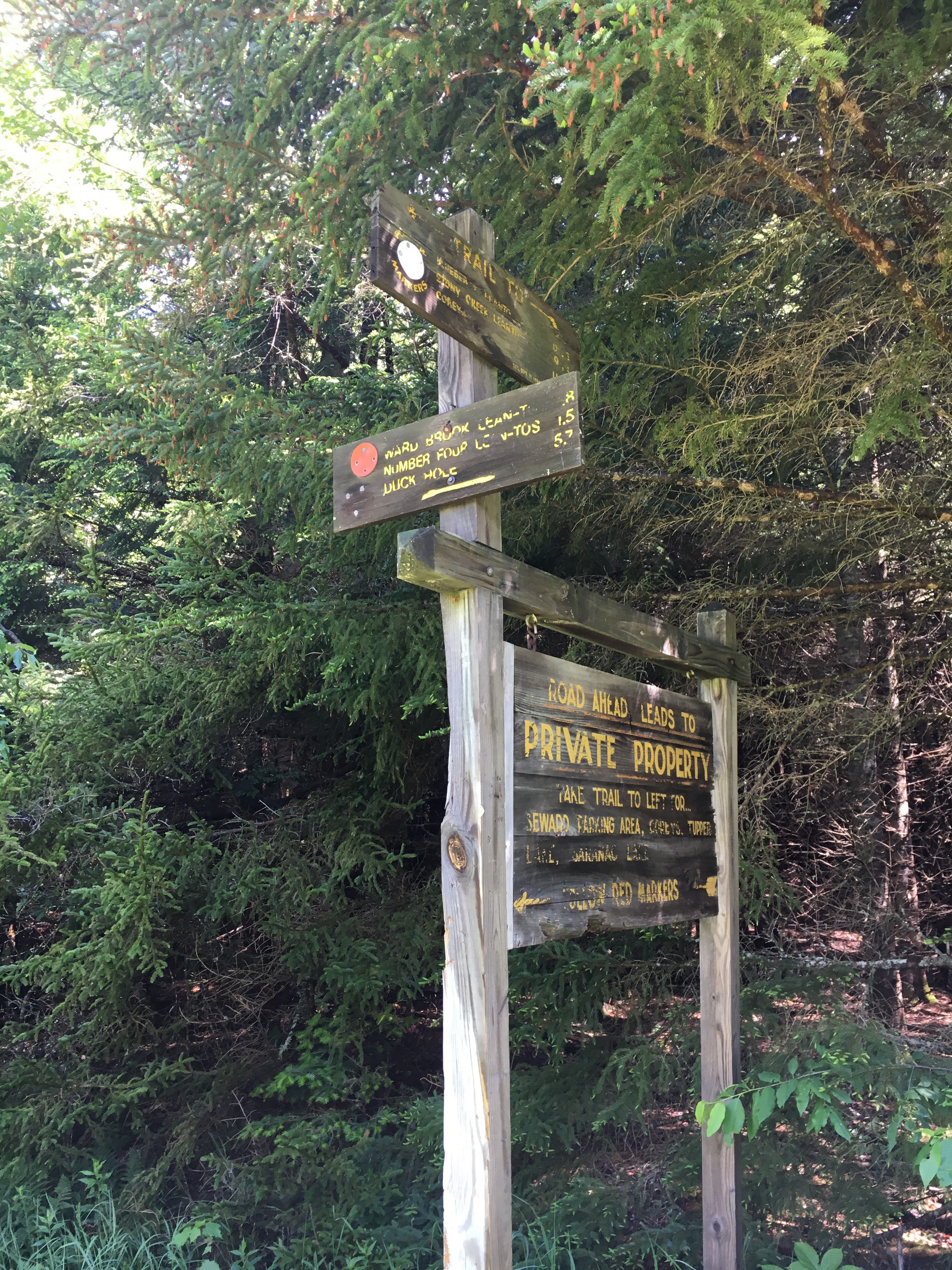 and before we knew it, we passed the Ward Brook Lean-to and found the cairn signifying the start of the herd path. ( I didn’t photograph either lean-to because both were full of hikers’ gear.) Loved the metal adornments atop the cairns in the Seward Range!