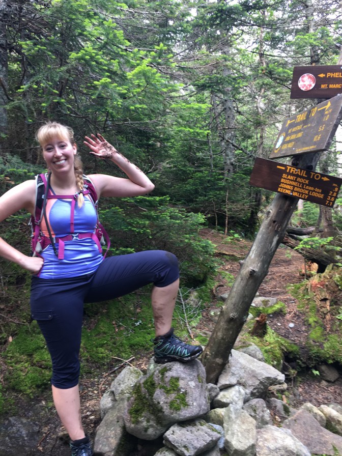 As we approached what felt like some sort of summit and a true sense of accomplishment fell over us, we quickly realized the sort-of-summit was the nub before climbing Little Haystack! So there we sat, to enjoy our trail lunches and rest. It was 11:00 a.m. and I was thankful my hips were holding up well so far!