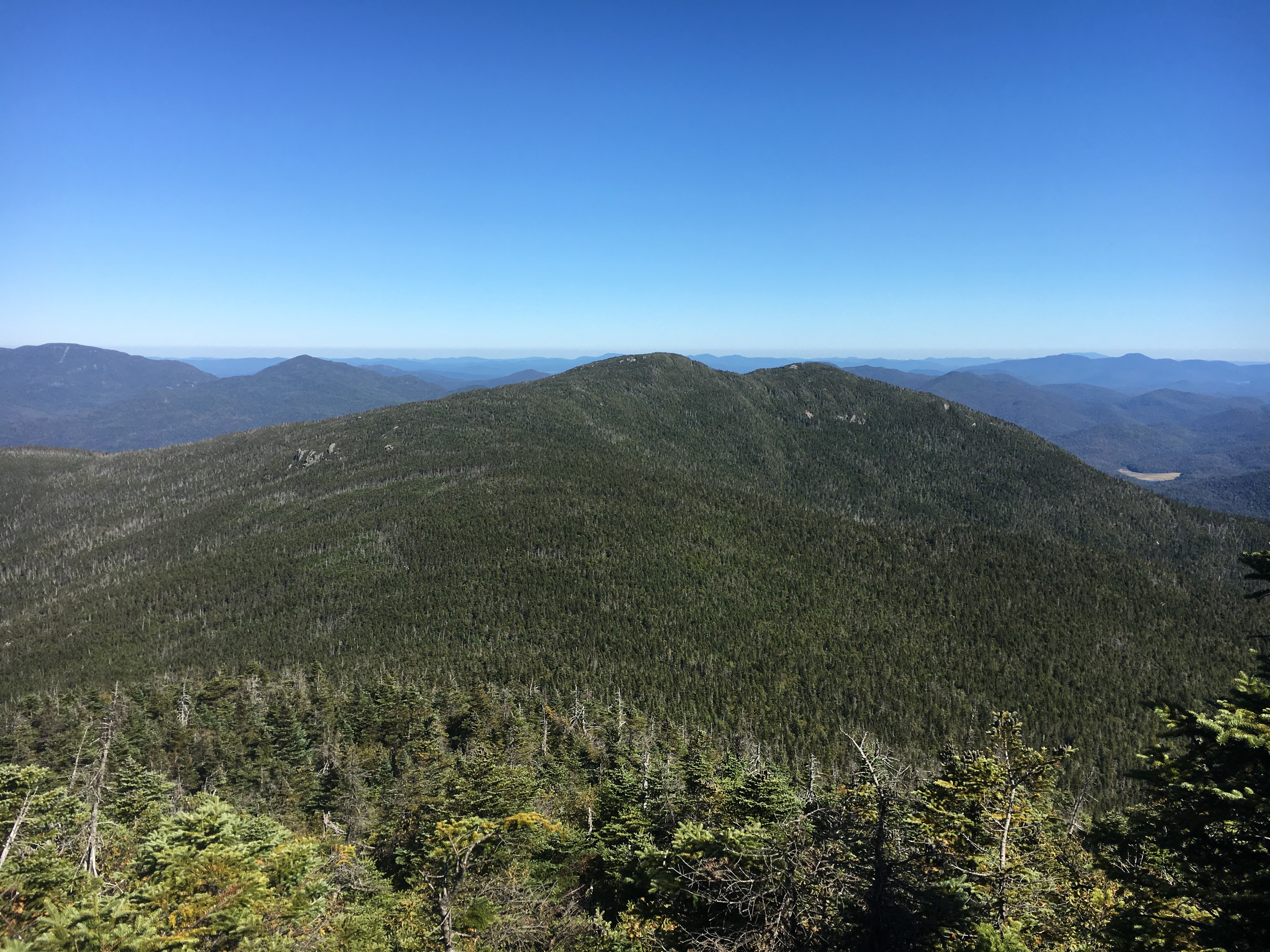 At the beginning of the descent along the rest of the Santanoni ridgeline, a first glimpse of the dirty dog, I mean, Couchsachraga Peak. Actually, in all honesty, I was in a good mood, and I was committed to giving ol’ Cooch the benefit of the doubt.