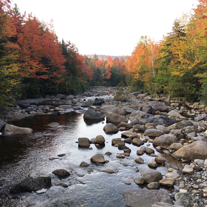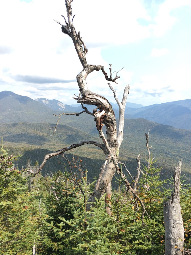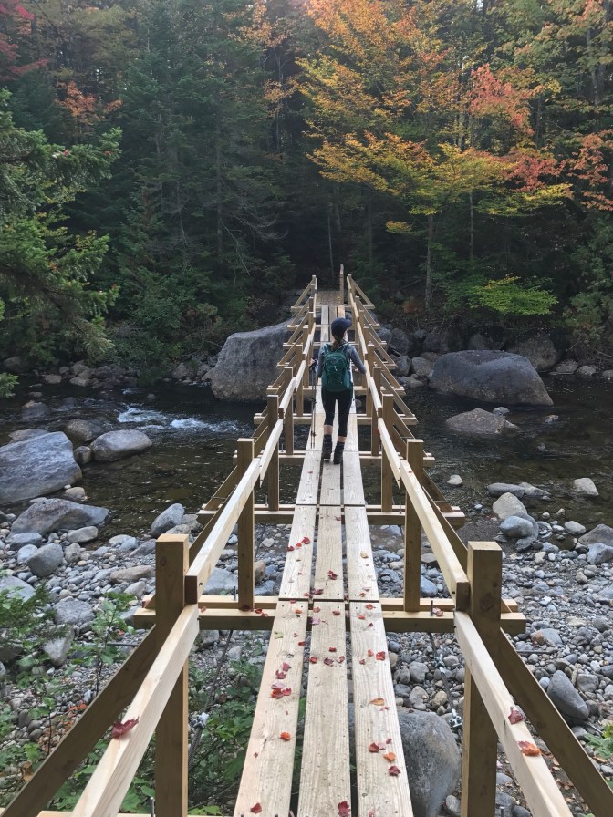 I know this sounds like crazy talk…but I LOVED Allen Mountain. LOVED. IN ALL CAPS. Maybe it was the weather. I mean, the day shouted “Autumn in the mountains!” Or maybe it was the company. Mallory is one of the best hiking gals (and friend) I know! Or maybe, it was just Allen. The remoteness. The worn, gravel road that whispered underfoot all the stories that lived among its rocks. The beautiful bridges (yes, fairly new bridges) inviting you into the healing wilderness. The ever-changing terrain, from tall, overgrown grass along extremely narrow paths, forest paths intertwined with gnarly root legs and fingers, soft pined beds along trails, and massive slides upon slides upon slides to climb. And…for a summit that gets knocked around for no views, there were gorgeous views all around! Views that included weathered bare-barked trees on the lookouts.