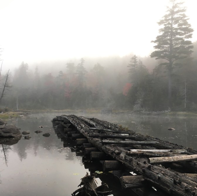 The washed out bridge on Lake Jimmy was a historic beauty. The fog rolled in early that morning, showcasing the peace and misty wonder only mountain lakes can exude.