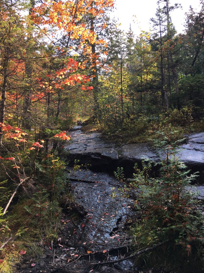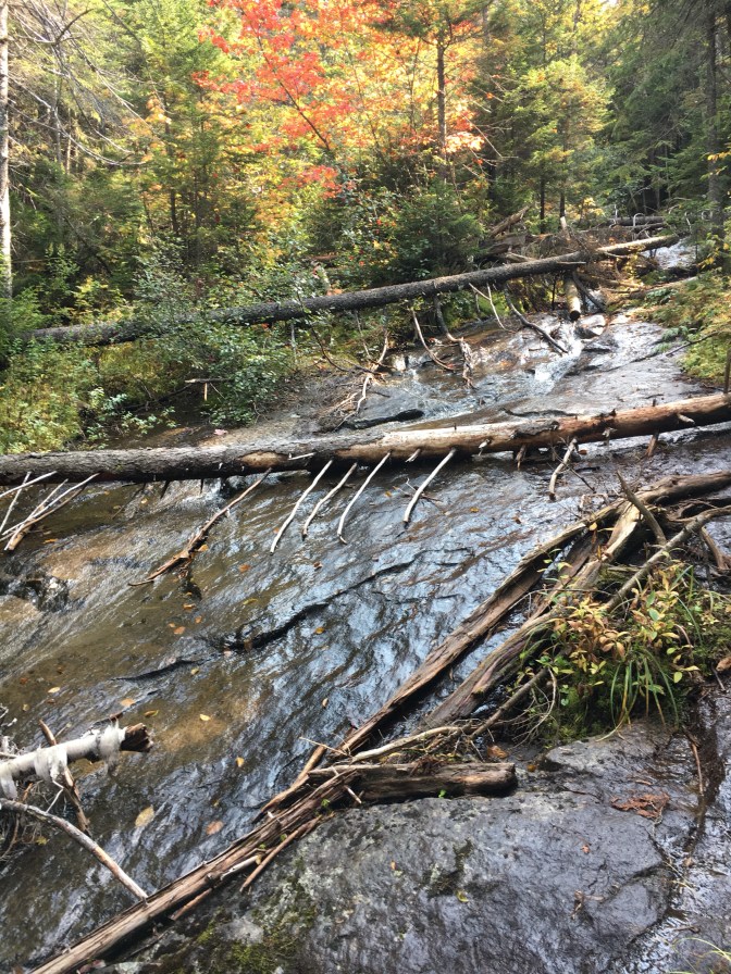 After our break, it was back on the trails! About 30 minutes later, we crossed Lower Twin Brook. Trickling and flowing calmly down the slide. Ahhh, peace.