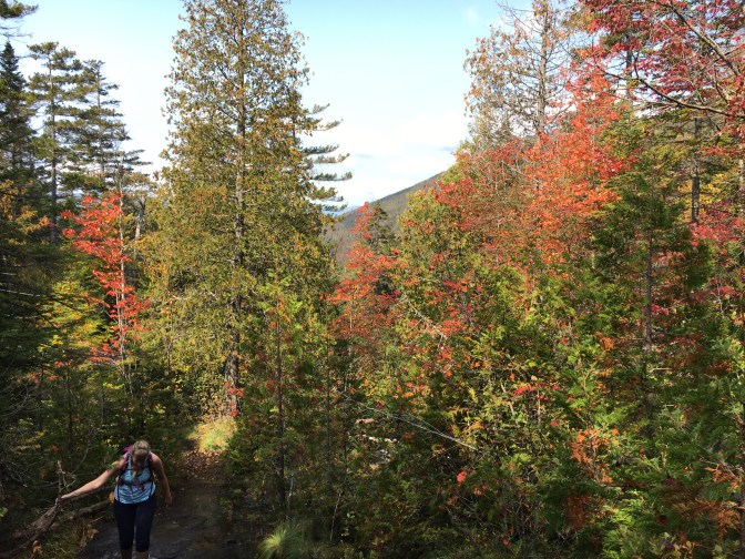 You basically climb a series of slides to the summit of Allen. Some among the vibrant trees, others in the wide open. I wondered when we would encounter the infamous red slime? But for now, the beauty prevailed, as the heart rates increased on the climb.