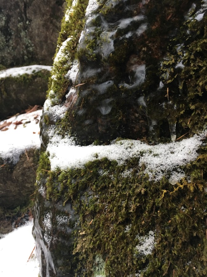 At 3:15 p.m., we embarked on the peaceful walk in the woods. Snow dusted all that lived among the forest. I inhaled the crisp, chilly mountain air intensely as an attempt to cleanse out all the negative vibes that had been stirring lately. Yes, this is just what the doctor ordered alright.