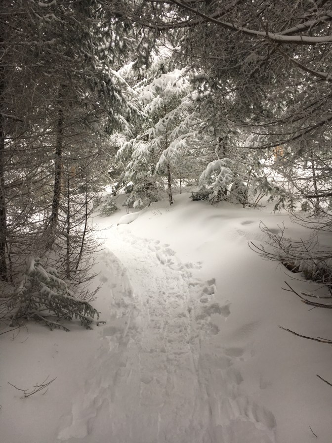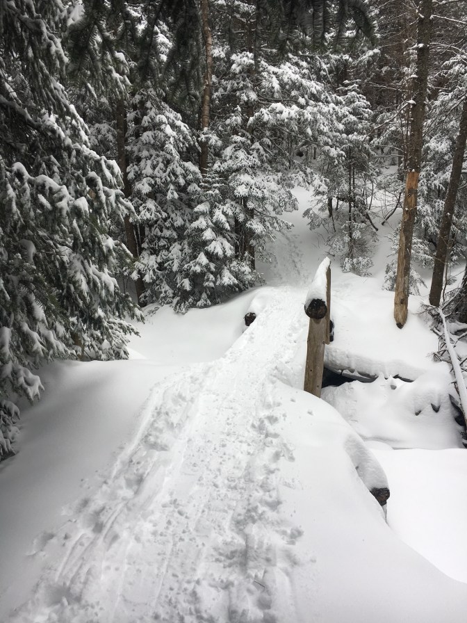 As I ambled along, patiently waiting for my legs to warm up, I realized I hadn’t been back here in over a year. The last time was the Skylight and Gray hike that Mallory and I climbed last February. Also following a major blizzard and one of the best hike ever!