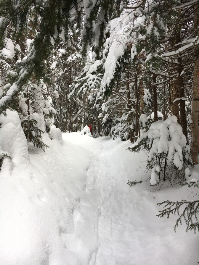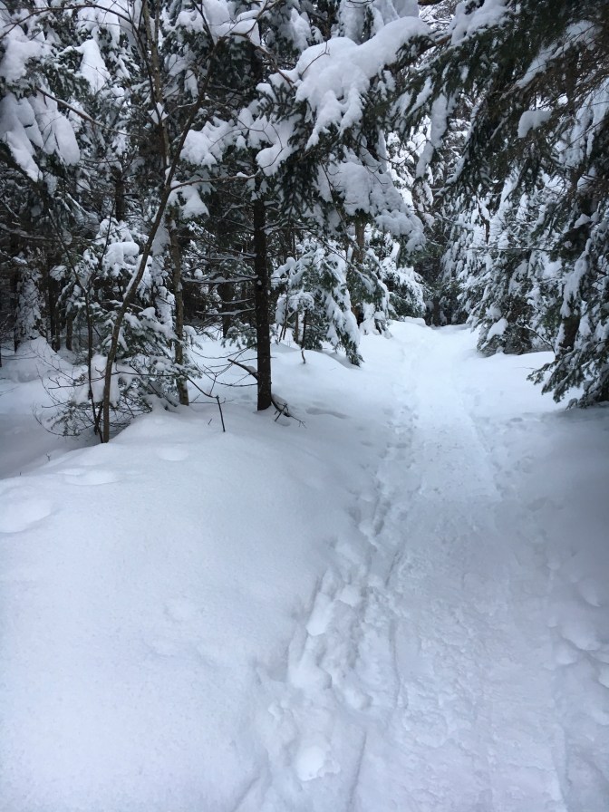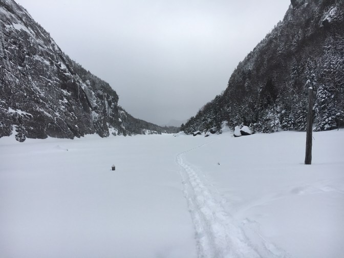 But walking across 2 incredible frozen lakes?? Heck yeah! Well worth the 20 mile journey. A first for us both. The only slight issue was all the new snow, snow and even more snow in the High Peaks once again! Breaking trail was a given, but I was too excited to revisit my treasured friends. Plus, I had some making up to do with Cliff.