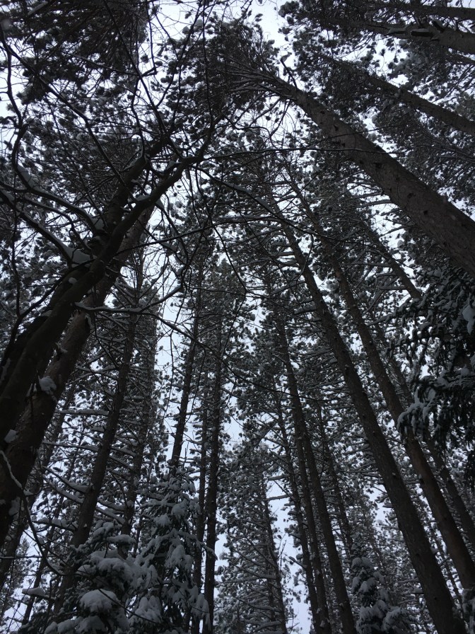 Tall pines adorned in flurries of fluff. Graceful, yet strong. Not a bad way to live. Graceful, yet strong.