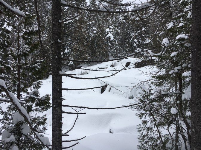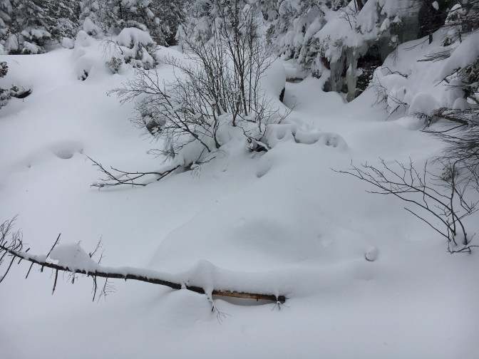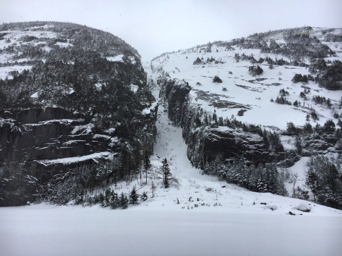 Cliff was cliffy. The sketchy spot in the fall that you needed to scale across, made more manageable by snow!