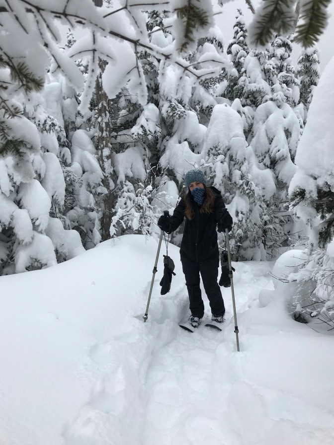 Smiling through the security blanket. The ascent was brutal but not as bad as in the fall. The snow levels the trail and smooths it all out, like a Zamboni. Winter is much more forgiving on the joints too. Especially for my hip. No pain at all!
