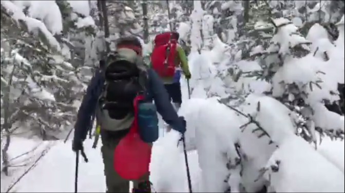 Four was better than two for breaking trail to Redfield! Who am I kidding, I was the caboose yet again! So maybe that helped pack down the trail for the descent?? Ha, I don’t know. But once more, I gave it my all, as the boys steamed ahead with persistence and tenacity. Plus I’m pretty sure James was built to break trail.