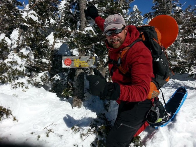 John and I didn’t linger on Rocky long. So it was the march down into the col and back up to the junction. I was feeling strong now! There was just the right amount of snow for my Tubbs to kick some major butt! Somewhere deep inside, there was a reservoir of energy, that shifted into overdrive on the climb back up to Giant. Finally!! Took me all winter to get to strong, haha!